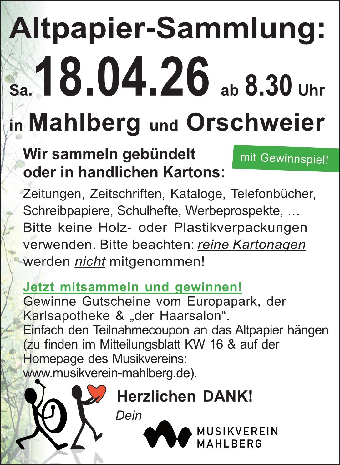Unsere Altpapiersammlung bei bestem Wetter war erfolgreich. Die nächste Sammlung steht im März 2026 an, sammelt fleißig für uns weiter!