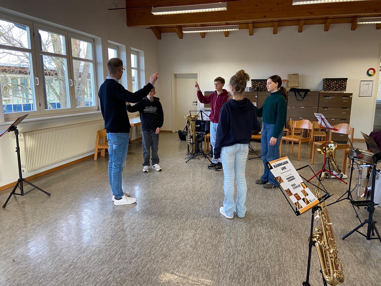 Heute wurde es für unsere 4 Nachwuchs-Dirigenten des Vororchesters spannend: Stefan Kiefer, stellvertretender Verbands-Dirigent, hatte sich ihnen für ein ganz persönliches Coaching zur Verfügung gestellt.