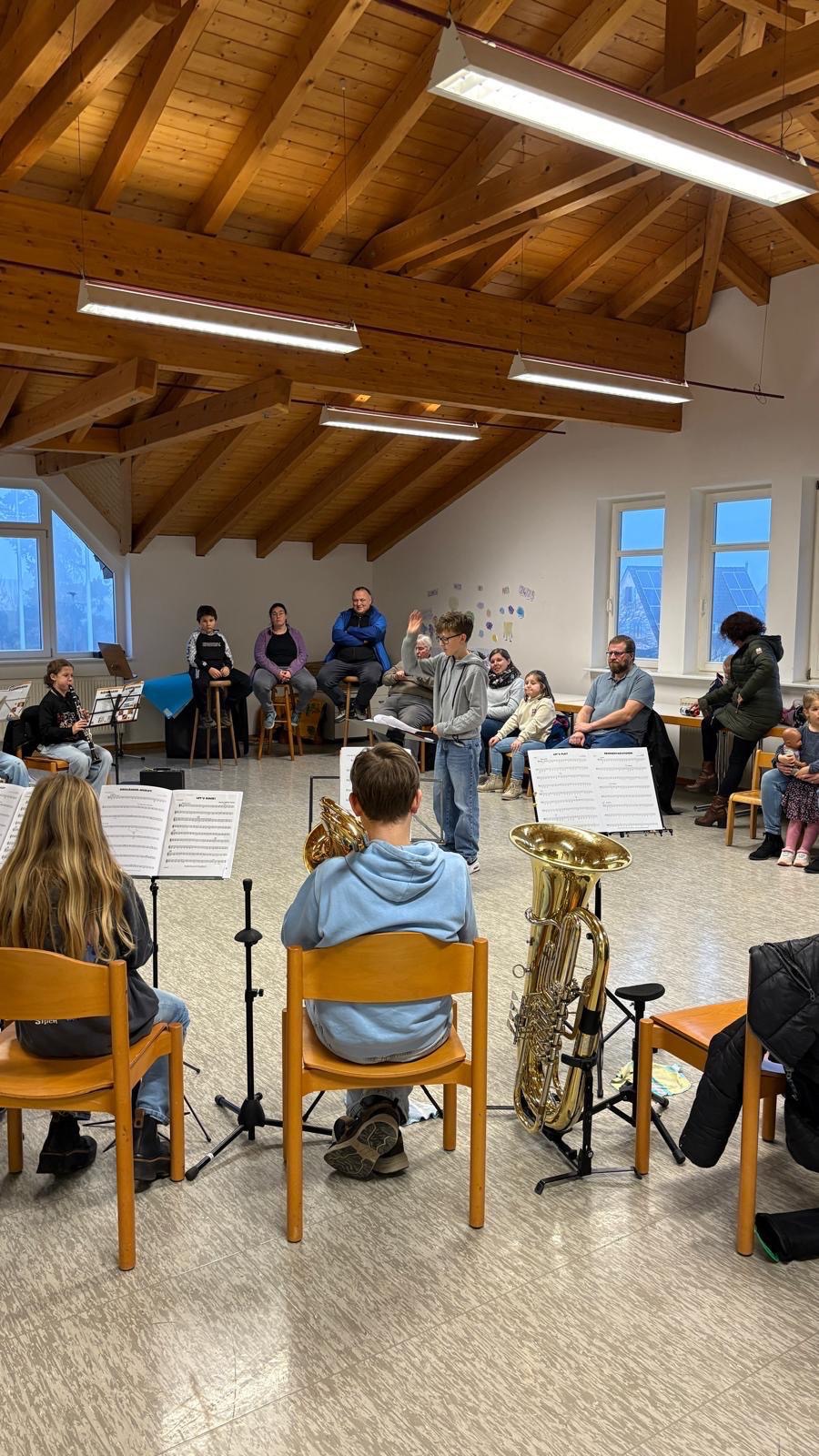 Für die Nachwuchsmusiker und ihre Dirigenten war es eine aufregende Situation, sich das erste Mal vor Publikum zu präsentieren. Umso größer war hinterher die Freude, dass sich das Üben gelohnt hatte: alle Stücke haben sehr gut geklappt und viele Zuhörer waren erstaunt, was die Gruppe in dieser kurzen Zeit zusammen erarbeitet hat.